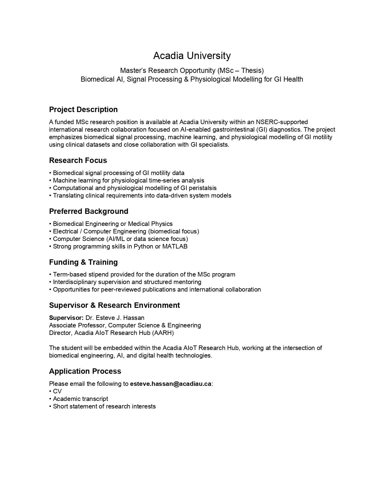 Please review this funded research opportunity under the supervision of Dr. Esteve Hassan in the area of AI-enabled gastrointestinal (GI) diagnostics.